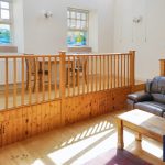 The cottage features open-plan living with a cosy lounge and well-equipped kitchen, blending traditional charm with modern comfort.