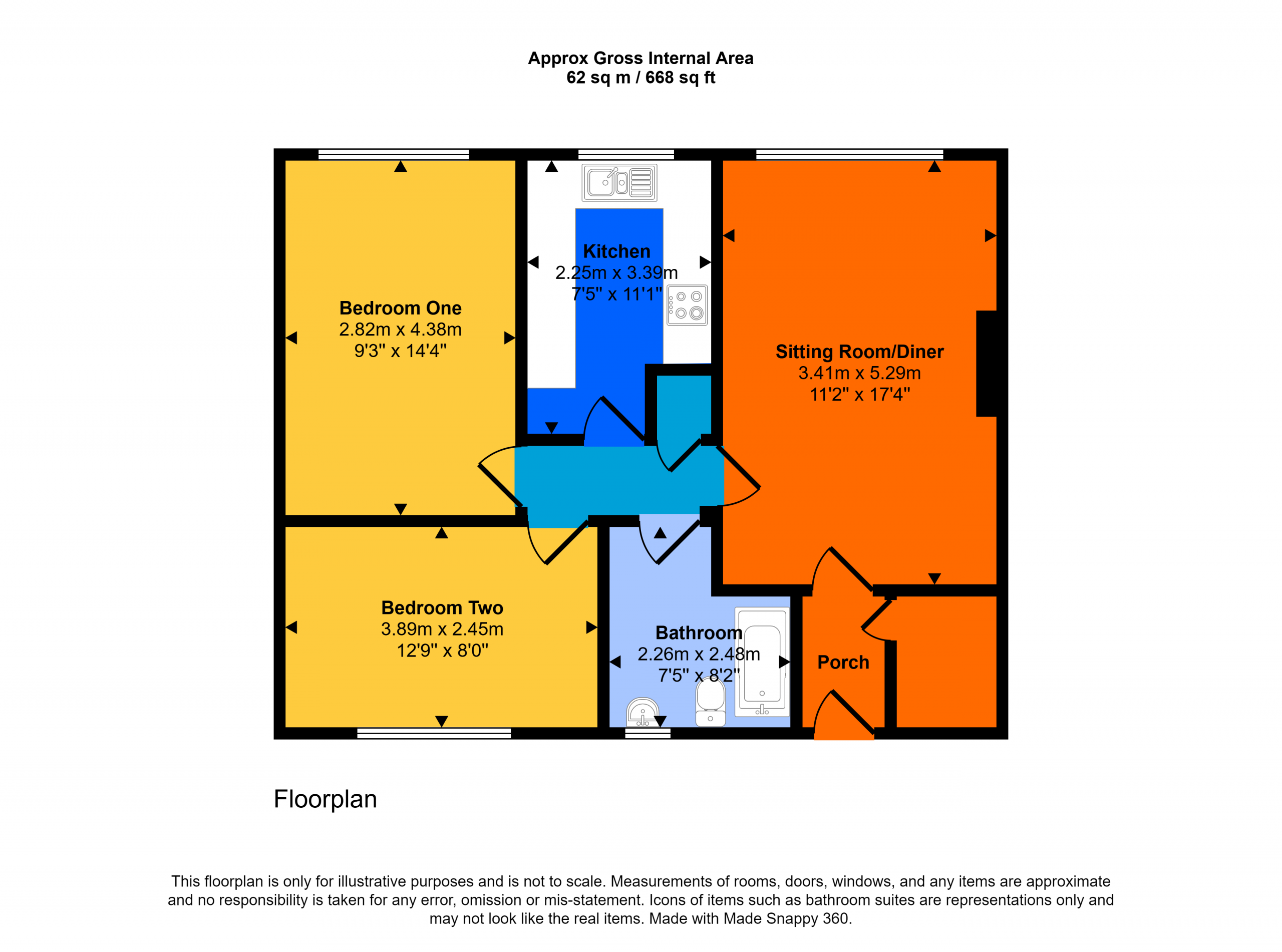 Entering the building via the communal door, stairs ascend to the second floor. Stepping inside an entrance porch way greets you where you have additional storage cupboard on your right, ideal for hanging coats and storing shoes, which guides through to the spacious sitting room/diner. The room provides ample floor space for a range of furniture and benefits from a large window, allowing plenty of natural light to flood the space, while enjoying views across the fields of Weston. Exiting the sitting room the hallway leads to the rest of the apartment and boasts a further storage cupboard. Moving through on your right is the galley kitchen, offering a range of fitted cabinets, ample work surface, plumbing for a washing machine and an integrated oven with four ring gas hob and extractor over. The two bedrooms are found towards the rear of the apartment, both double sized rooms. The bathroom comprises a bath with shower over, wash hand basin and W.C.