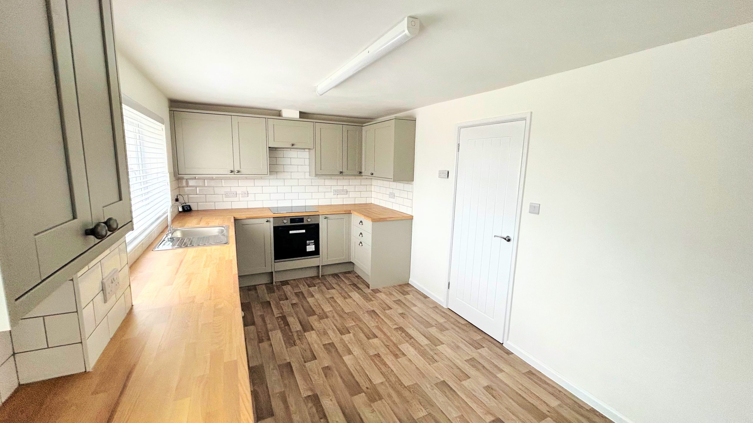 From here, you move through to the kitchen at the rear of the property. The kitchen is well laid out and practical, offering good workspace and storage for day-to-day living. The staircase is positioned between the living area and the kitchen, keeping movement through the house straightforward and unobtrusive.