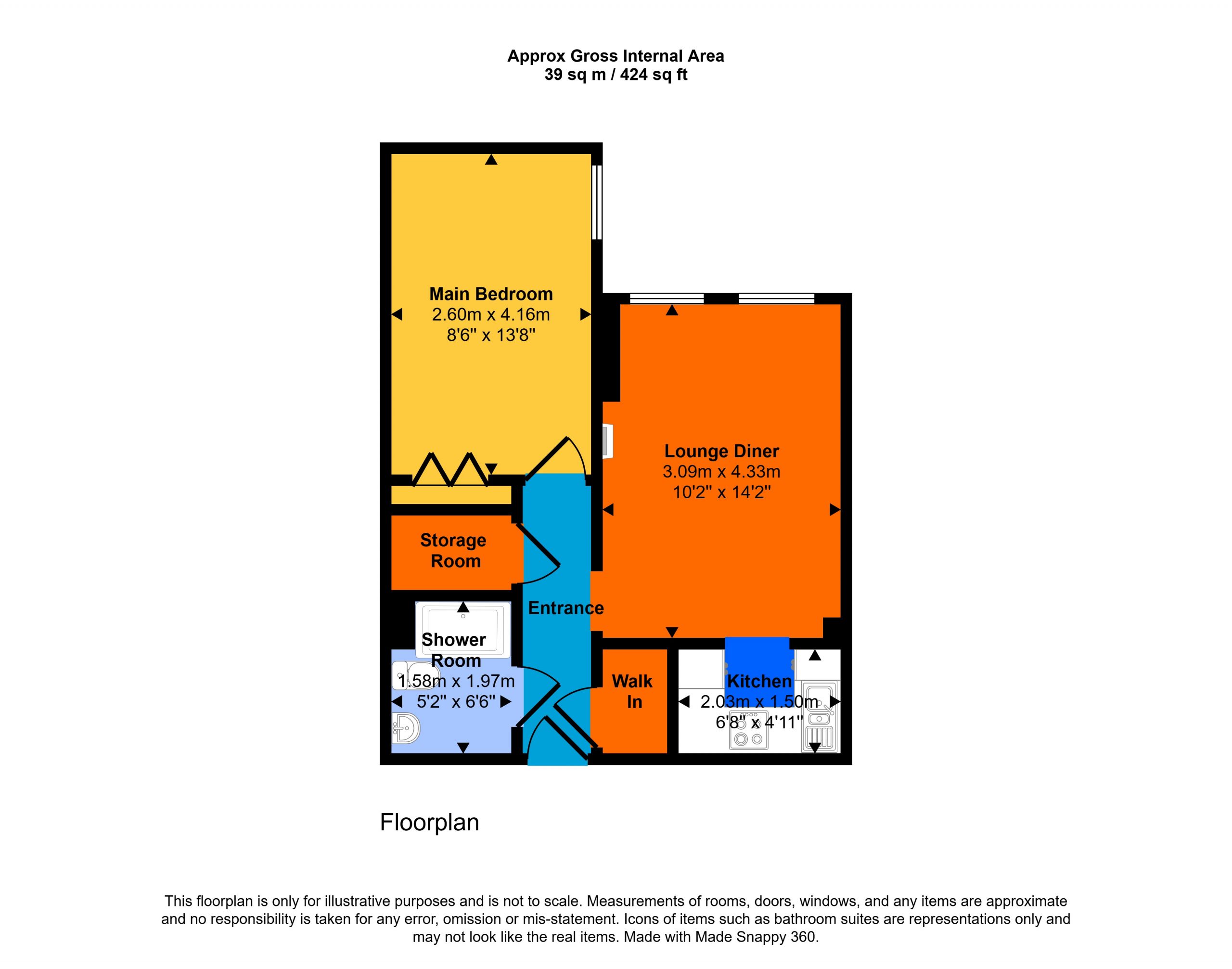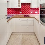 The flat entrance door opens into the hallway, which offers access to two walk in storage cupboards, one of which contains the electrical switch board and the upgraded, more energy efficient water heater. The living/dining room features uPVC double glazed windows with integrated blinds, and an electric fire with surround and hearth, creating a pleasant focal point; to the rear of the living room an arch opens into the kitchen. The kitchen has been updated with contemporary eye and knee level cabinets, integrated hob, oven and fridge/freezer, the red herringbone style tiling offers a pop of colour to the splash prone areas.
